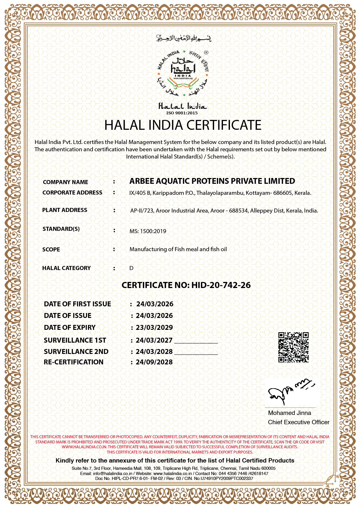 | ARBEE AQUATIC PROTEINS PRIVATE LIMITED |