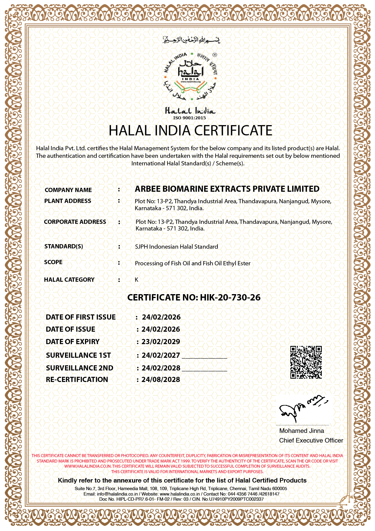 | ARBEE BIOMARINE EXTRACTS PRIVATE LIMITED |
