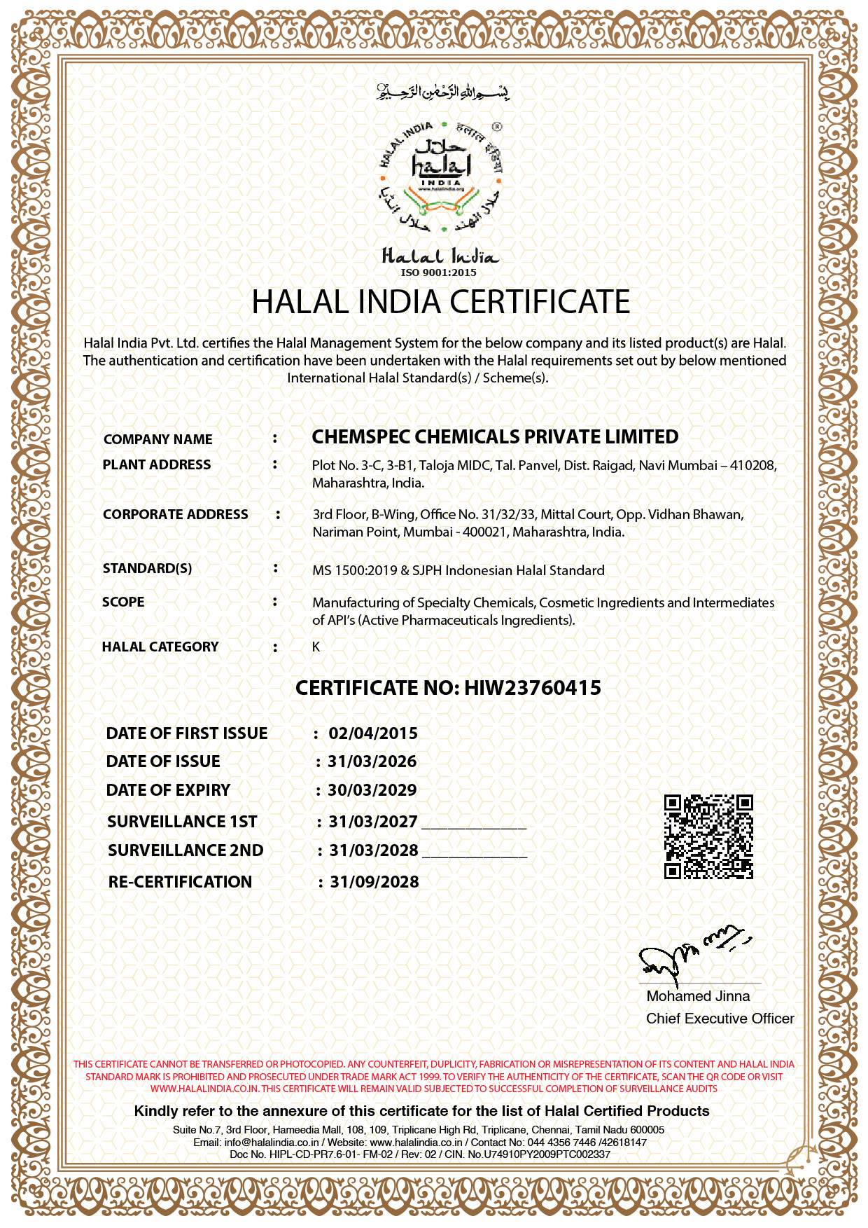 | CHEMSPEC CHEMICALS PRIVATE LIMITED |